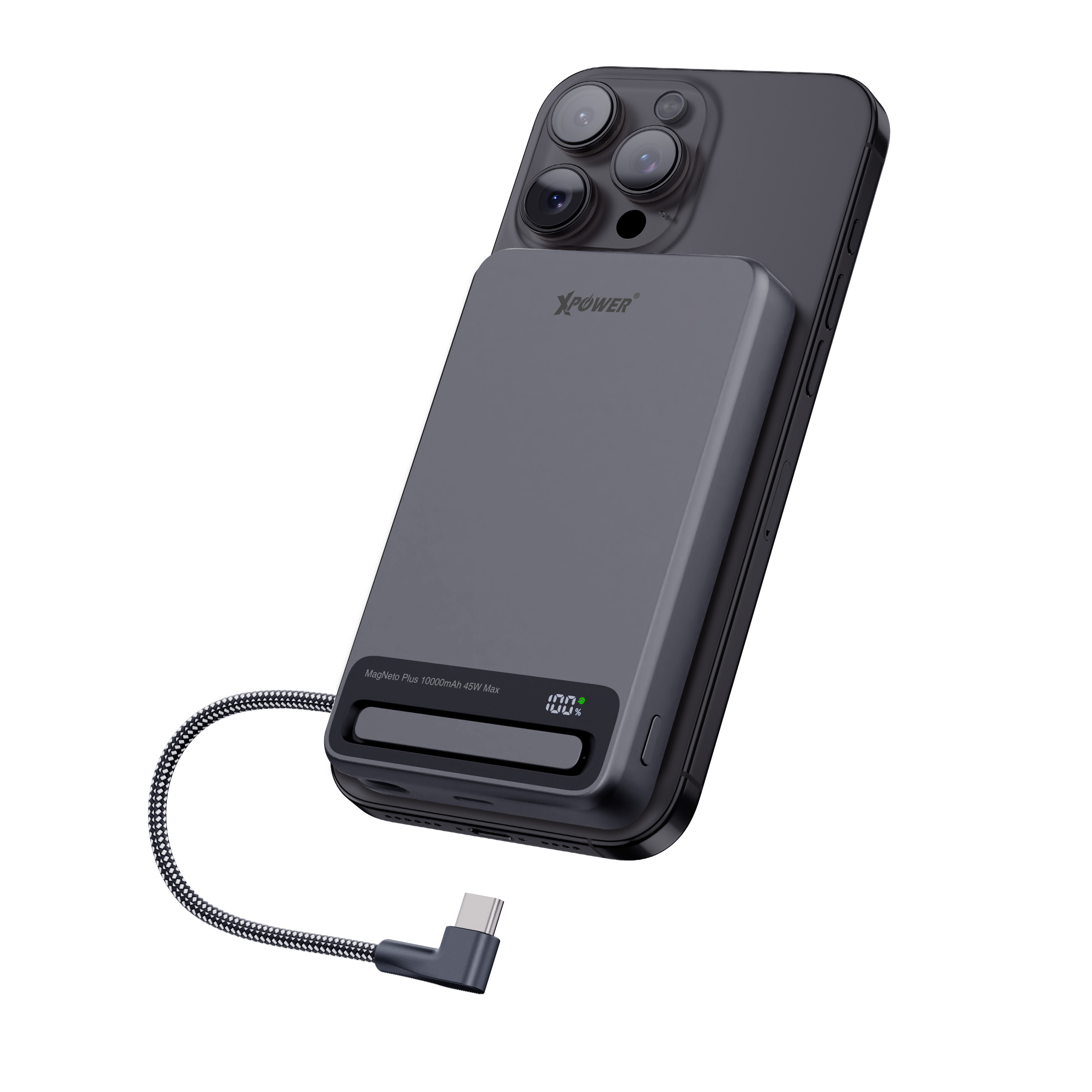 (3C認證)XPower MagNetoPlus Q10 Pro鋁合金10000mAh 45W PD3.0支架內置線及數顯QI2磁吸移動電源