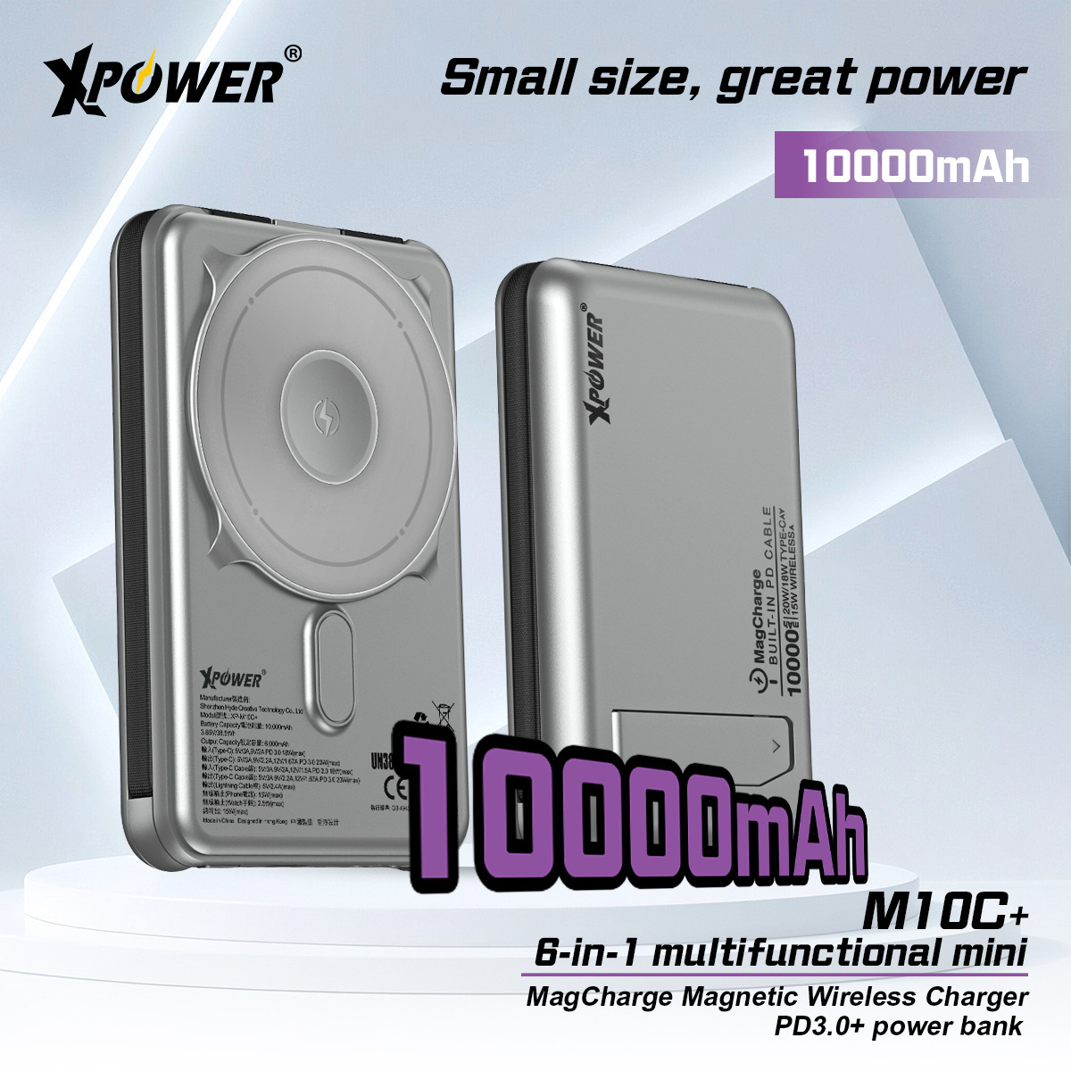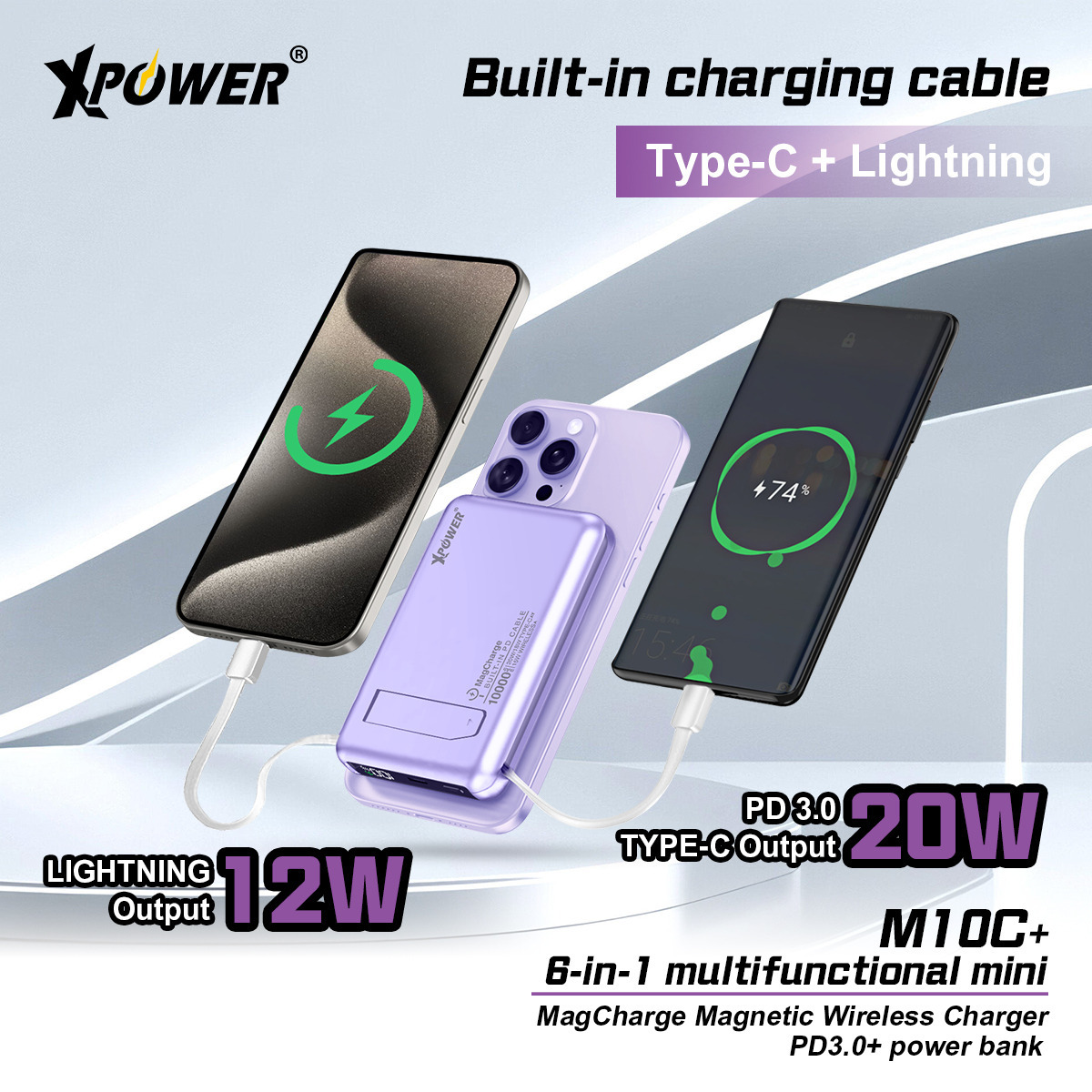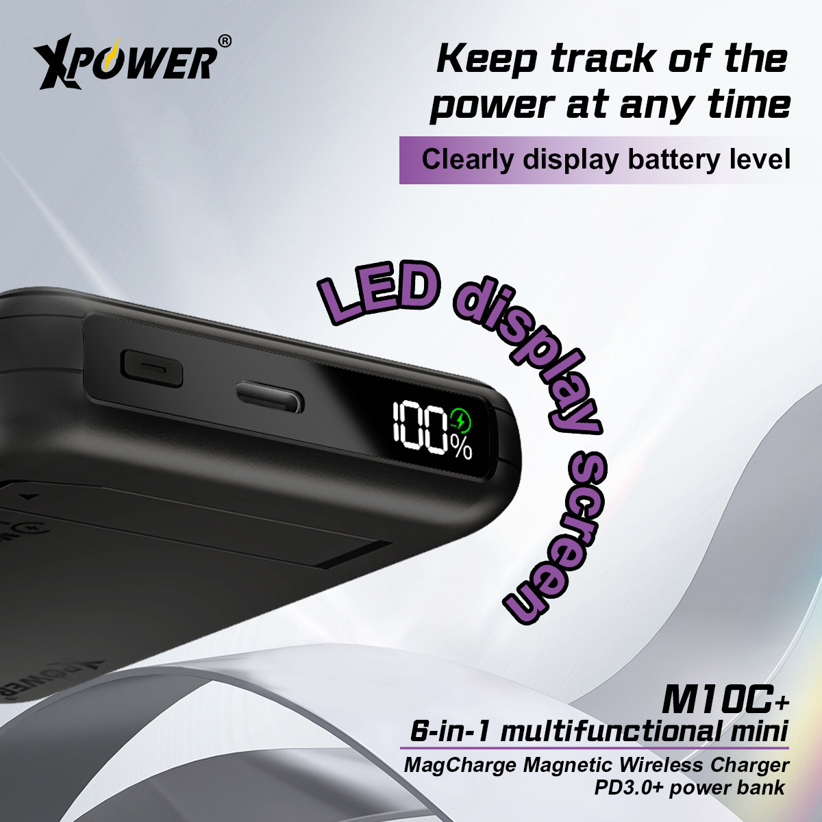(3C認證)XPower M10C+ 6合1多功能數顯10000mAh 20W PD3.0 + 磁吸無線移動電源