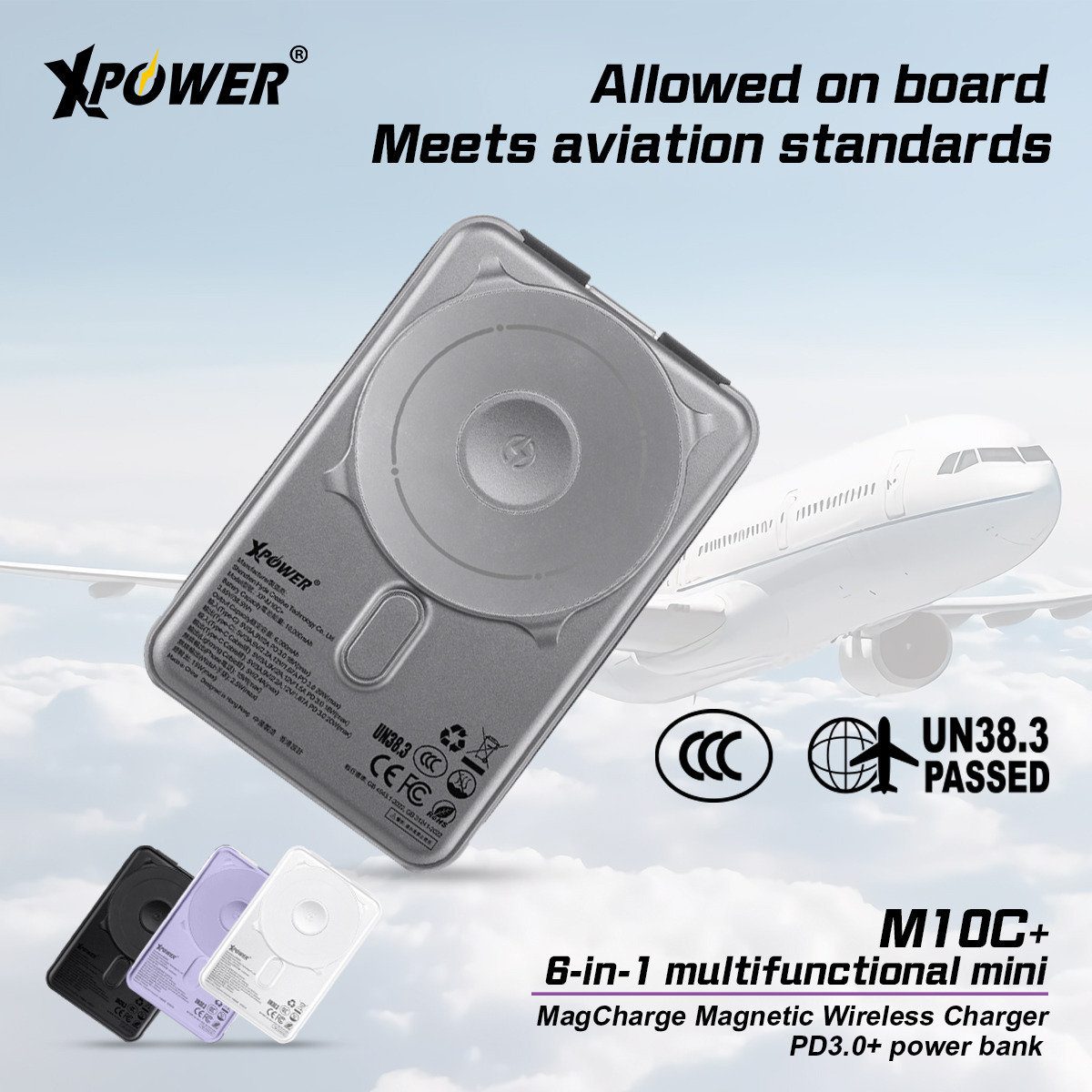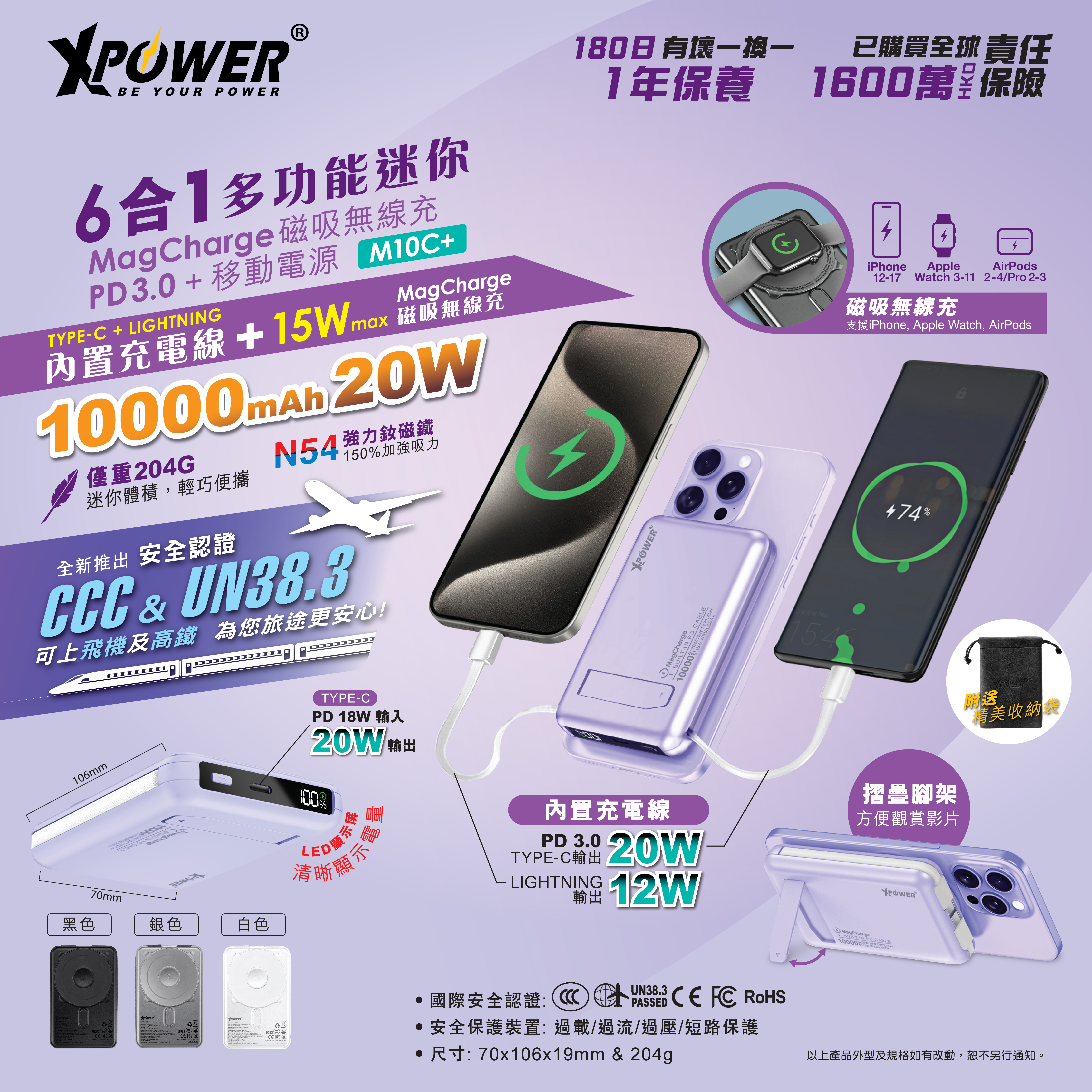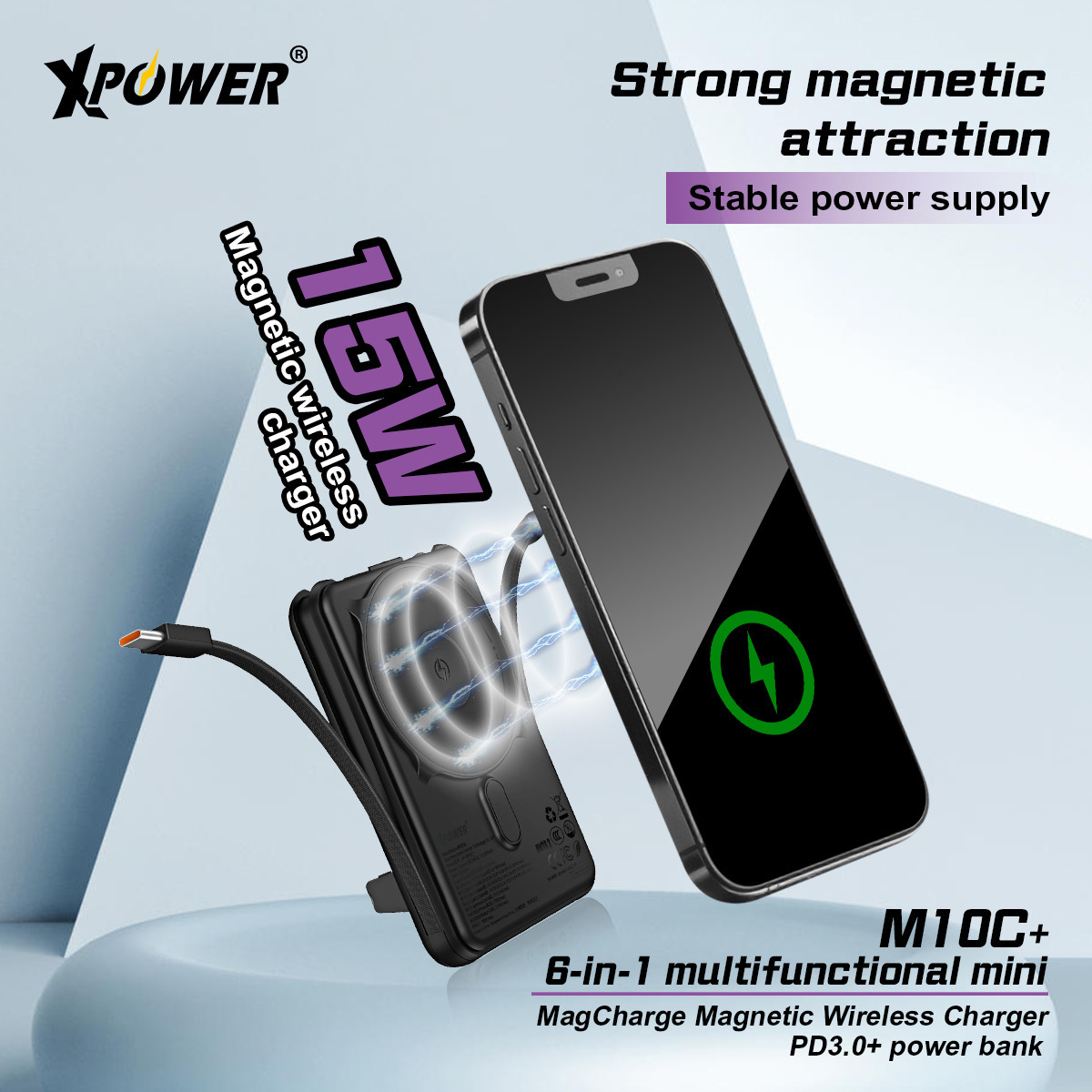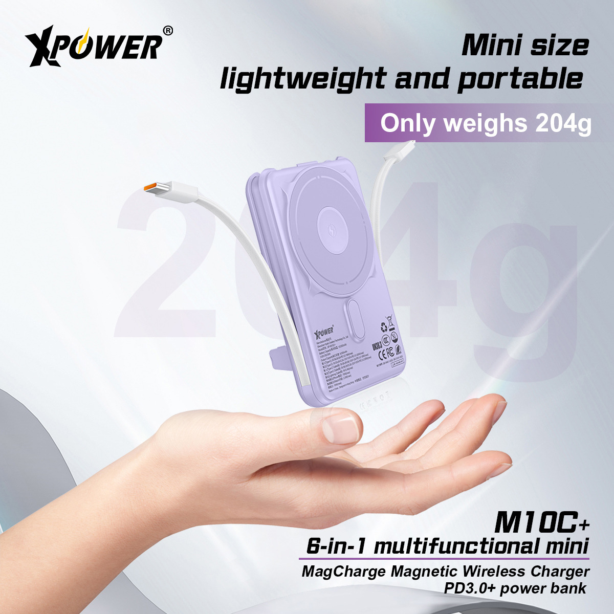 (3C認證)XPower M10C+ 6合1多功能數顯10000mAh 20W PD3.0 + 磁吸無線移動電源