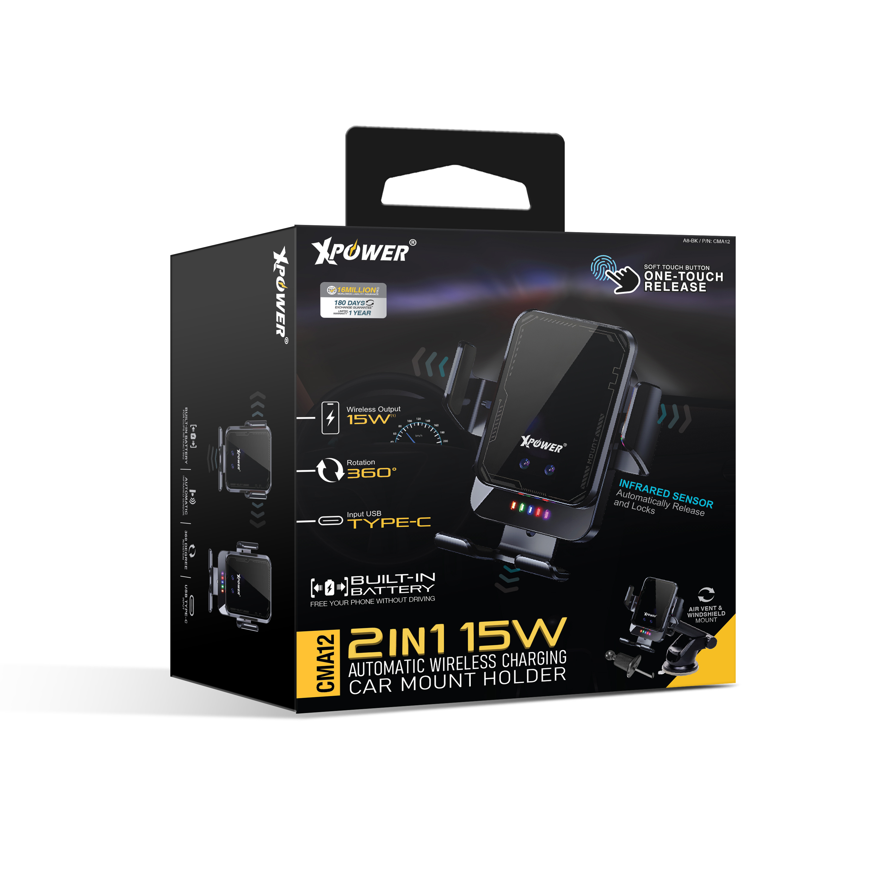 XPower CMA12 2合1 15W 無線快充自動車支架