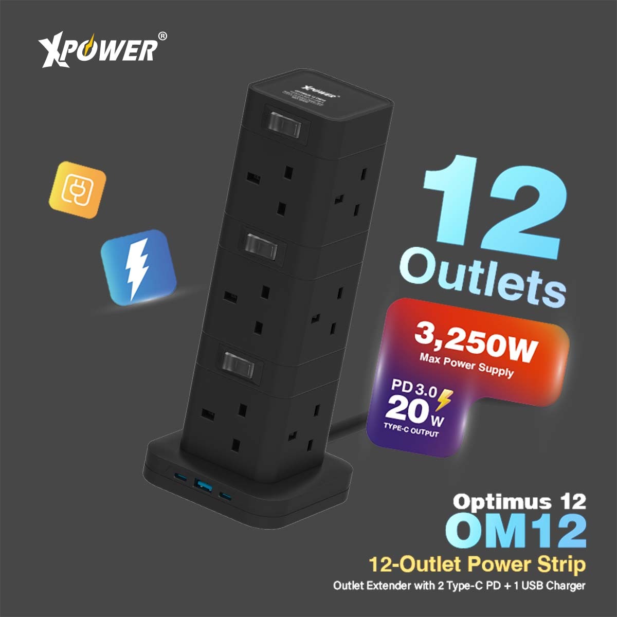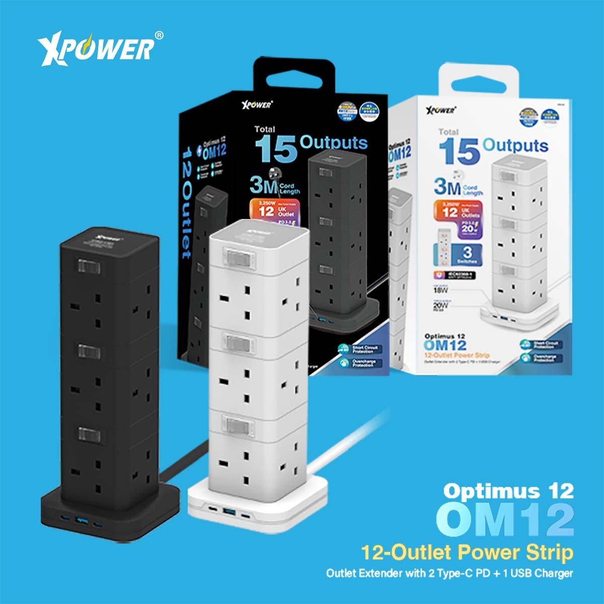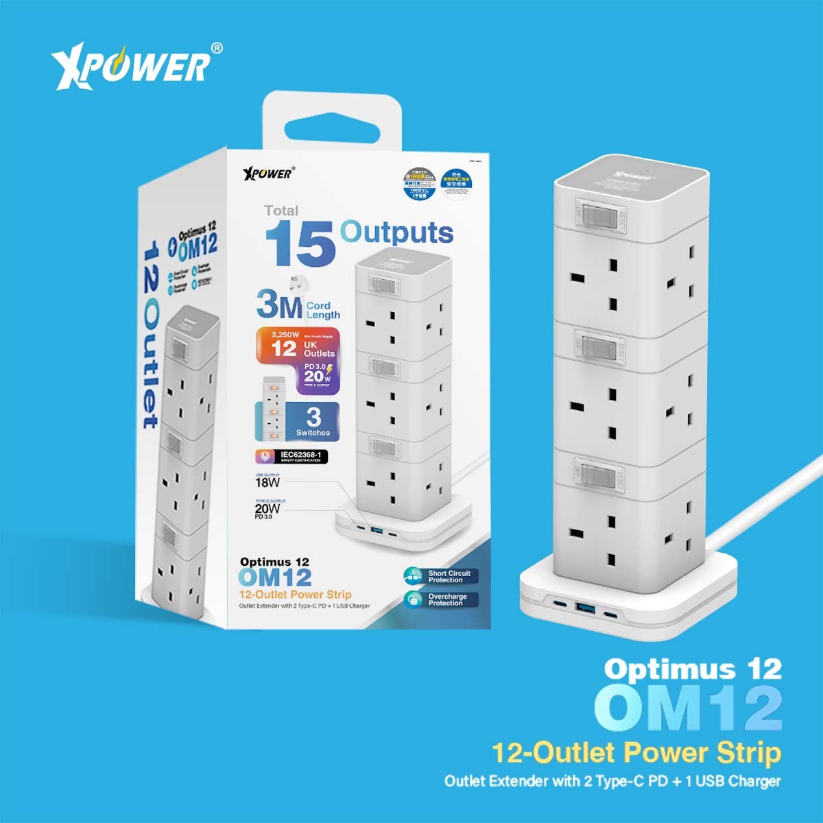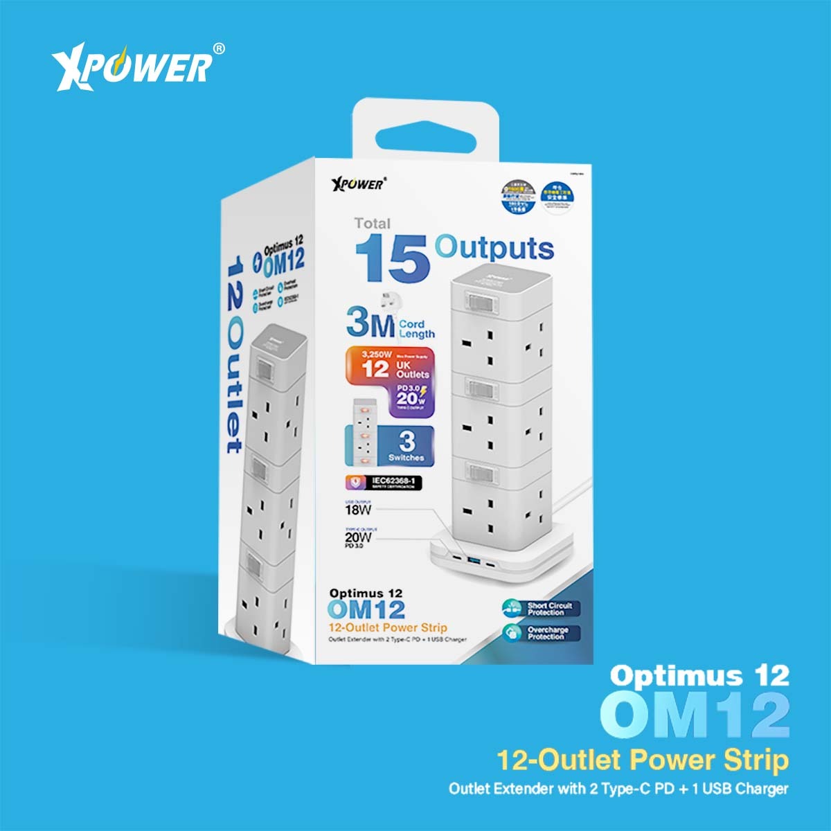 XPower Optimus12 OM12 全港首款直立式15輸出開關拖板(3米線長 12個插頭 PD 3.0輸出)