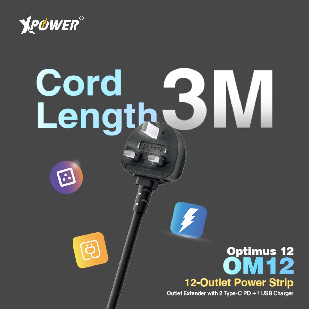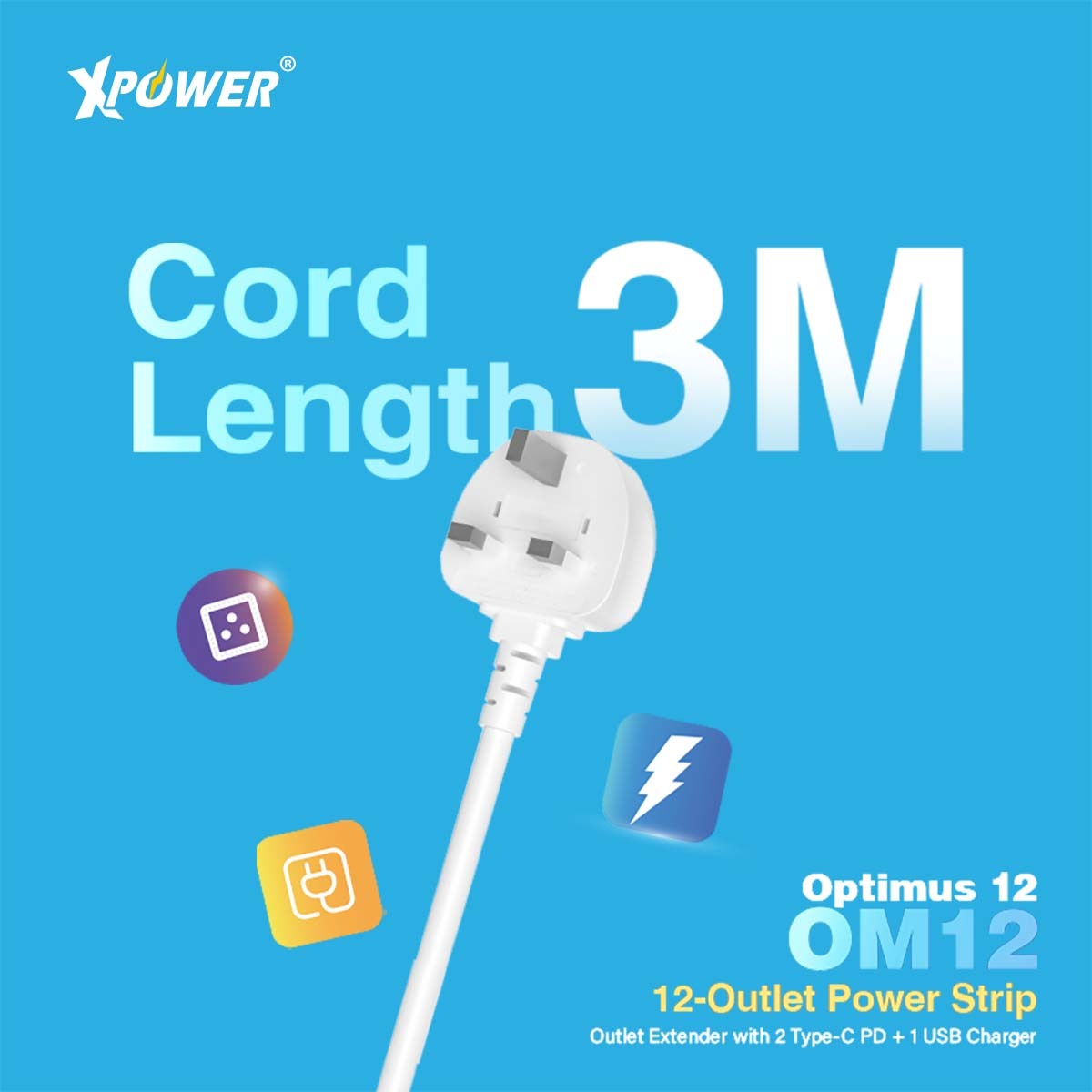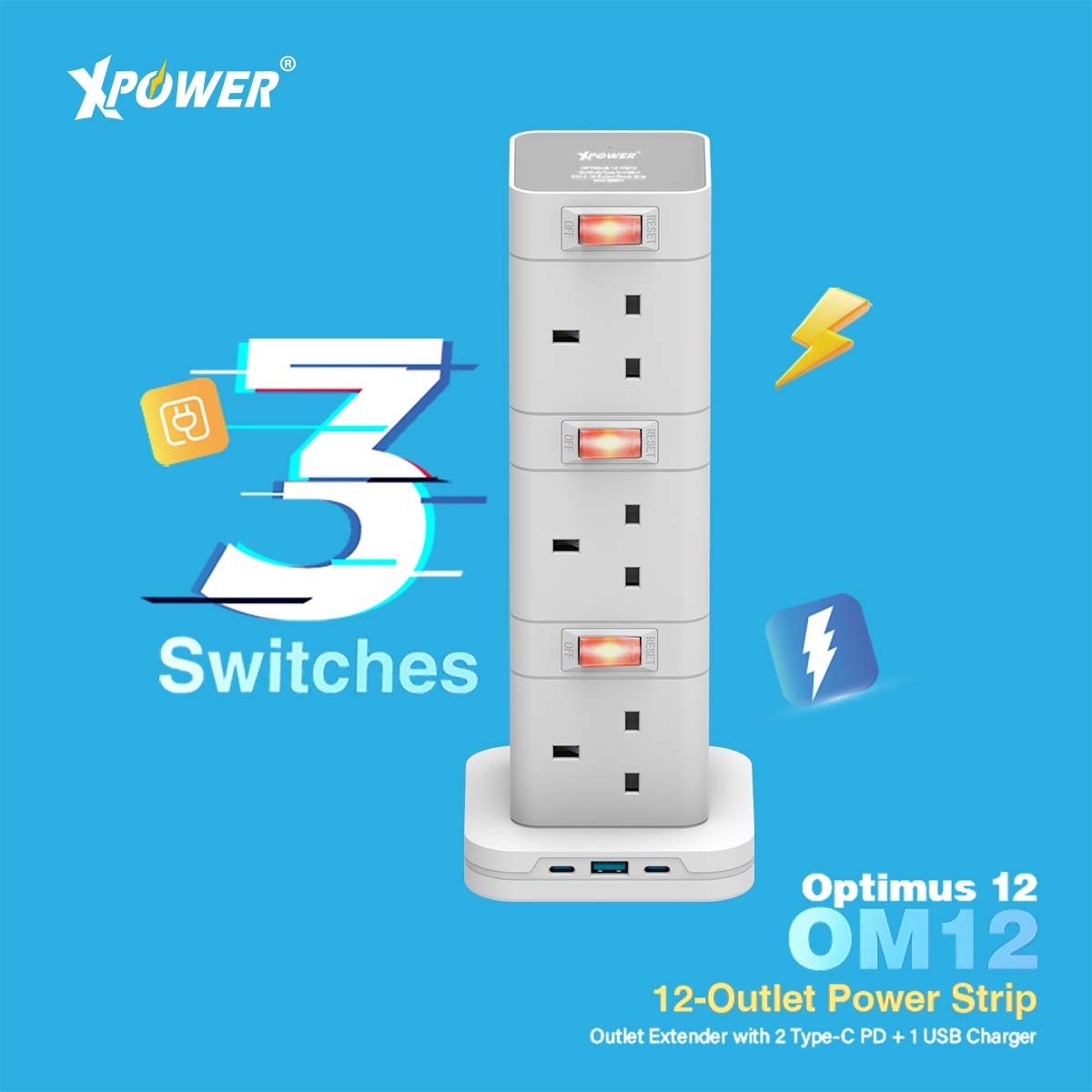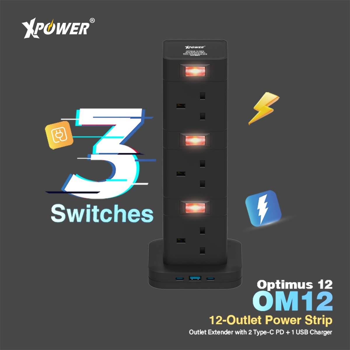 XPower Optimus12 OM12 全港首款直立式15輸出開關拖板(3米線長 12個插頭 PD 3.0輸出)
