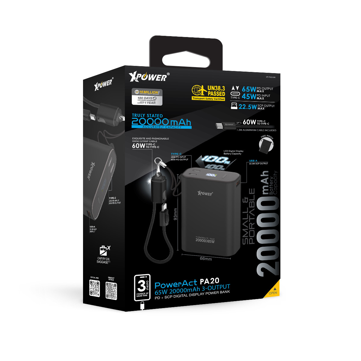 XPower PowerAct PA20 65W 20000mAh 3輸出 PD+SCP數顯移動電源