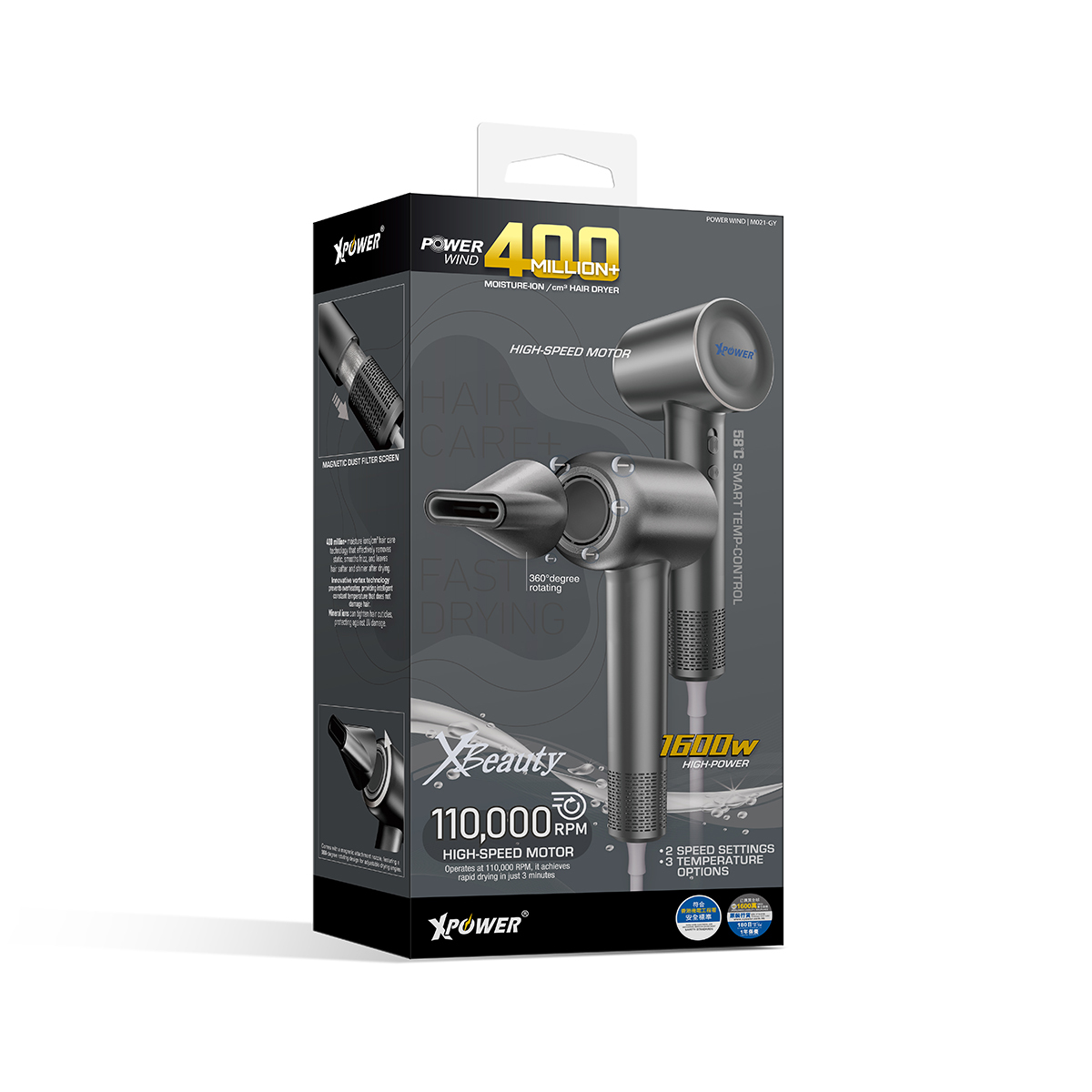 XPower POWERWIND 智能4億+水潤負離子護髮速乾風筒