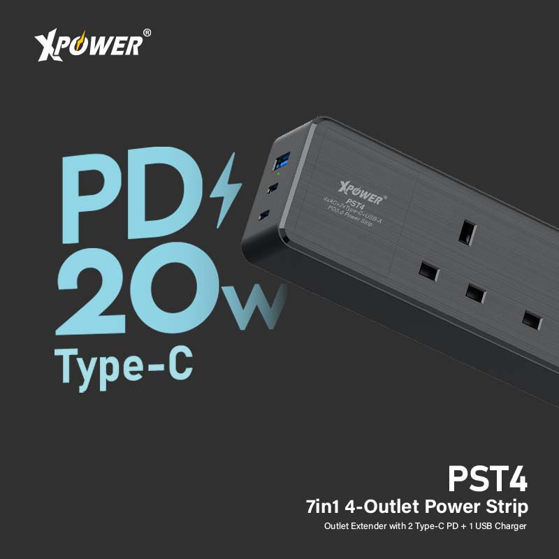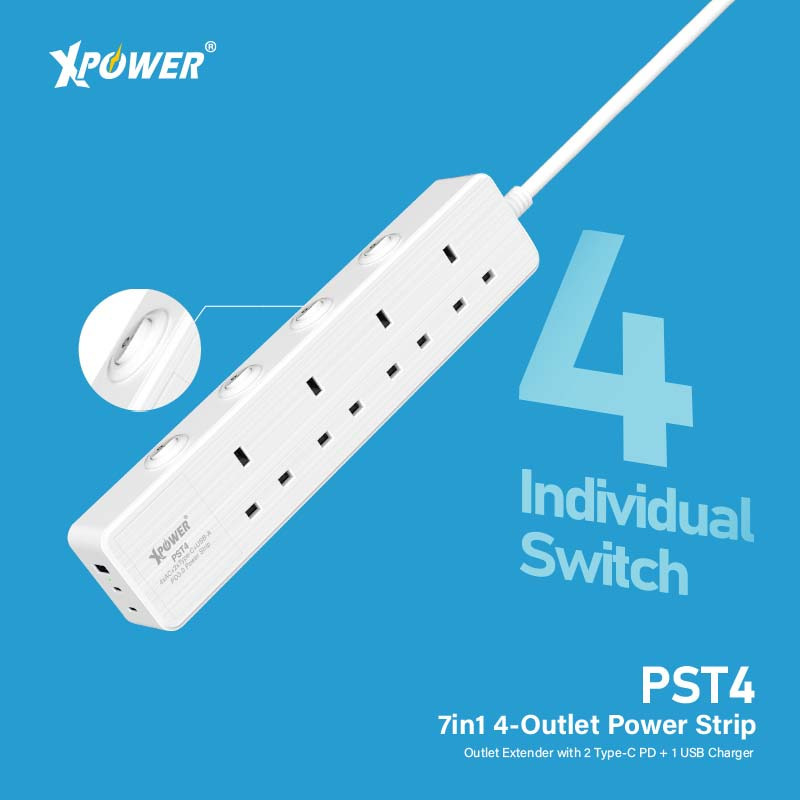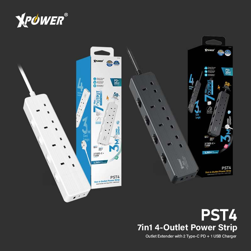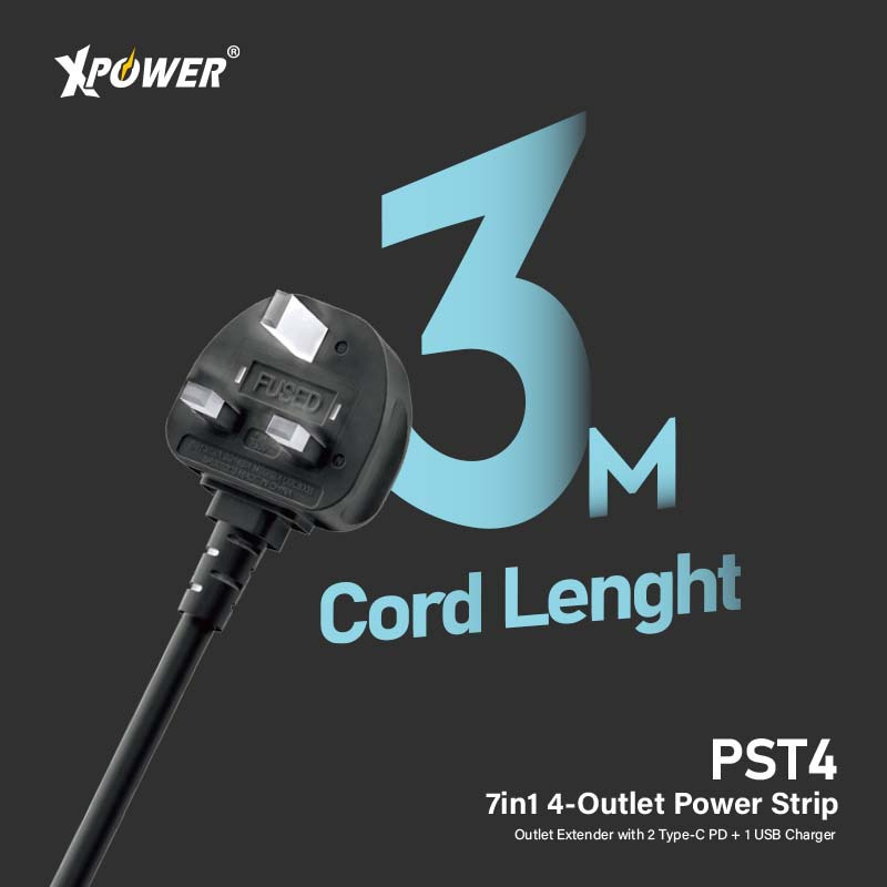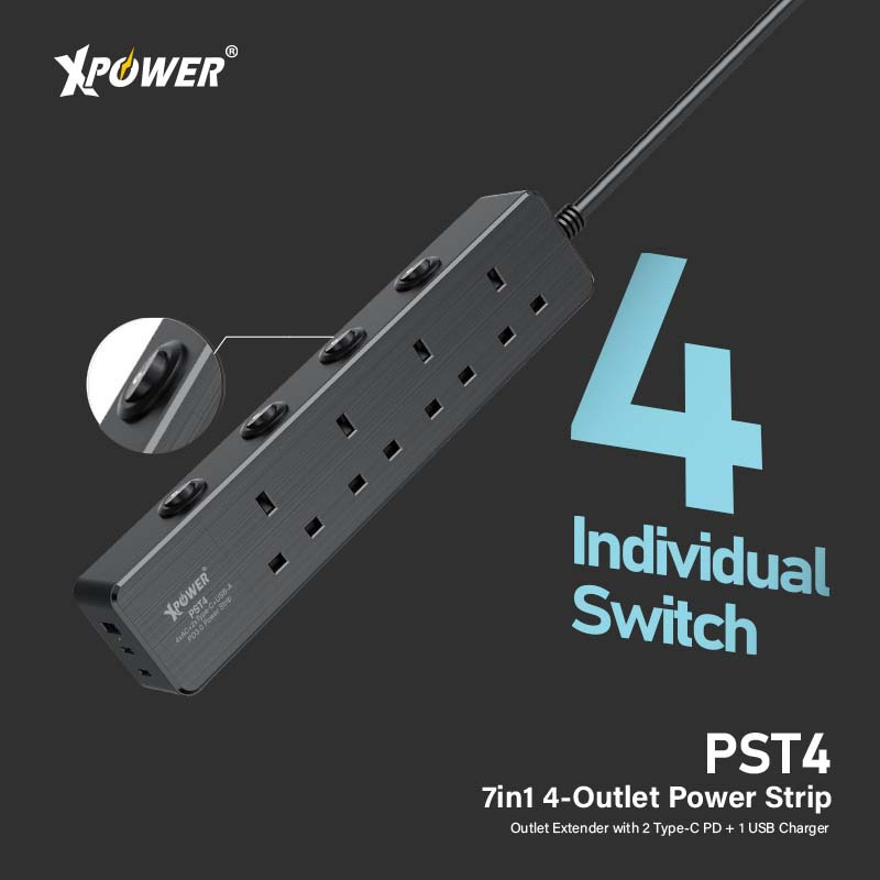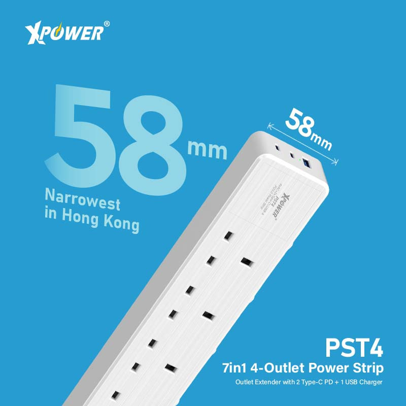 XPower PST4 58mm 3米線長 7輸出PD 3.0獨立開關4頭拖板