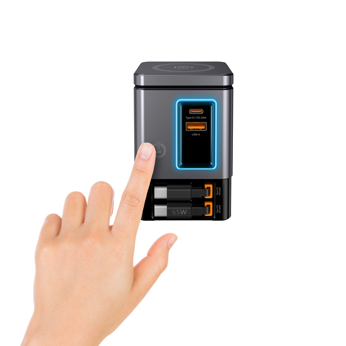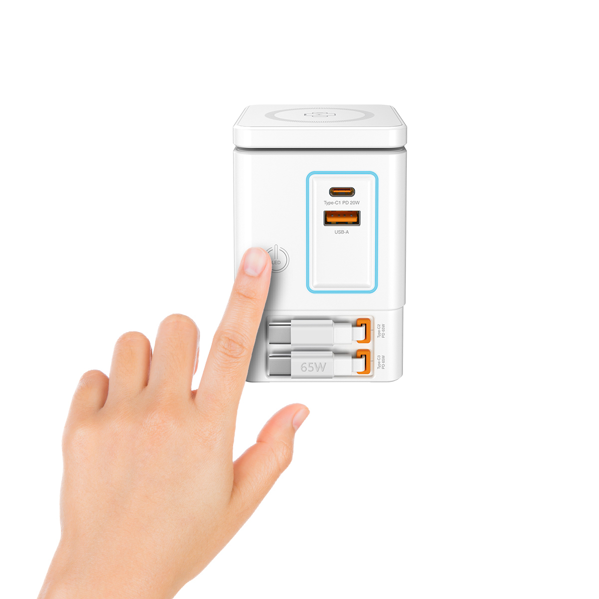 * 6x 輸出: 2x 無線快充(MagCharge + Wireless Charge)、2x Type-C內置伸縮線、1x Type-C接口和 1x USB接口