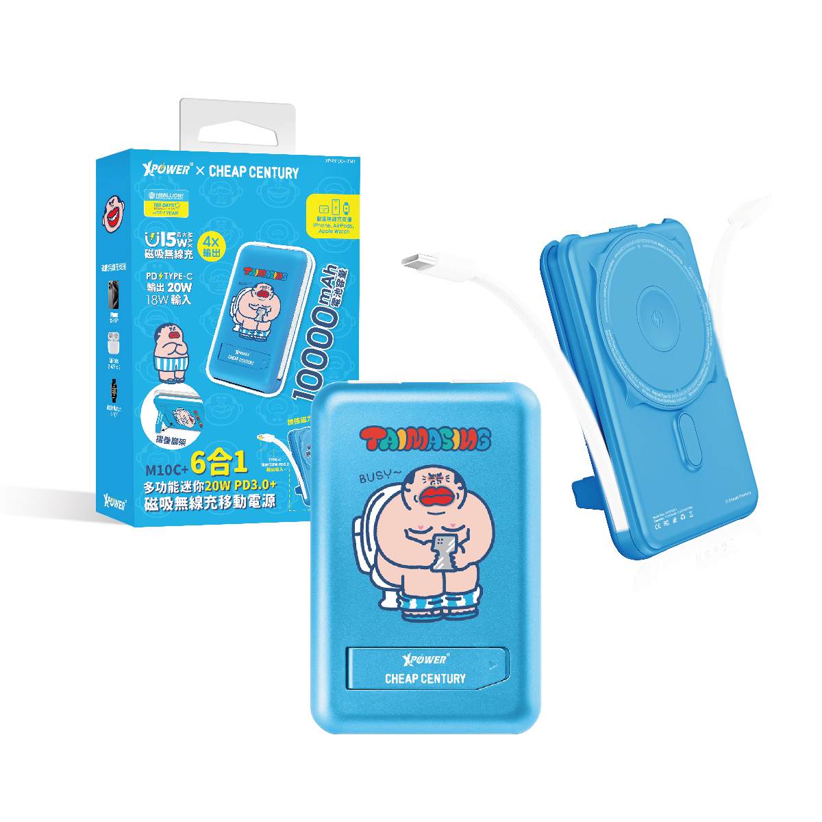 (雙TypeC線版)XPower x 大麻成 M10C+ 6合1 10000mAh多功能迷你20W PD3.0+ 磁吸無線快充移動電源