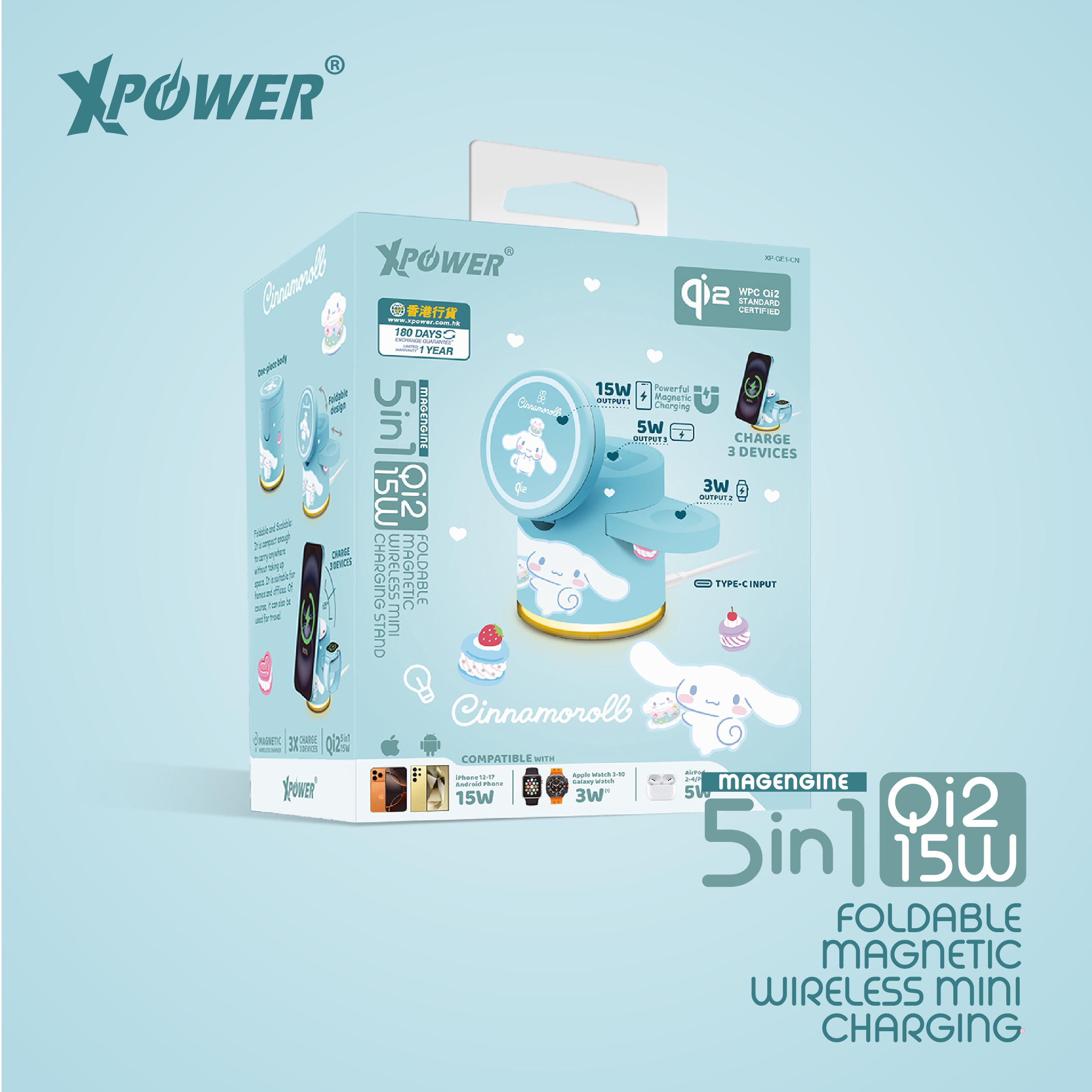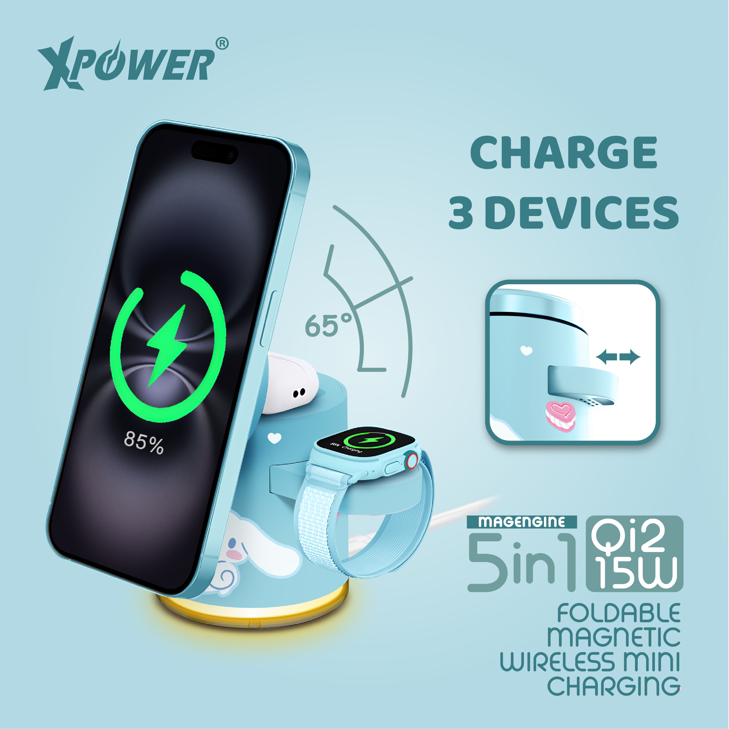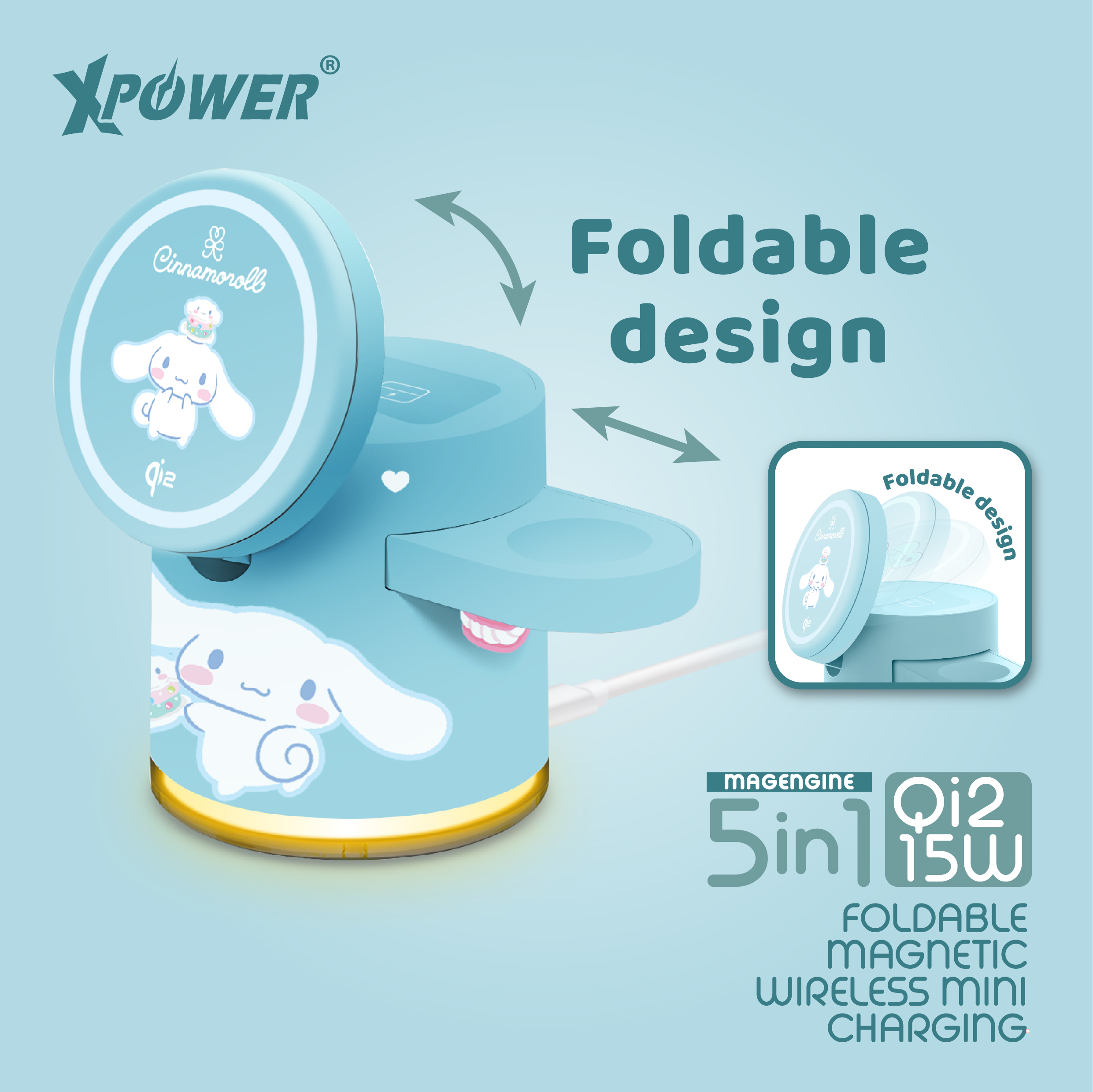 XPower x Sanrio Cinnamoroll GE1 Qi2迷你掌心5合1 MagCharge 15W磁吸無線充電座