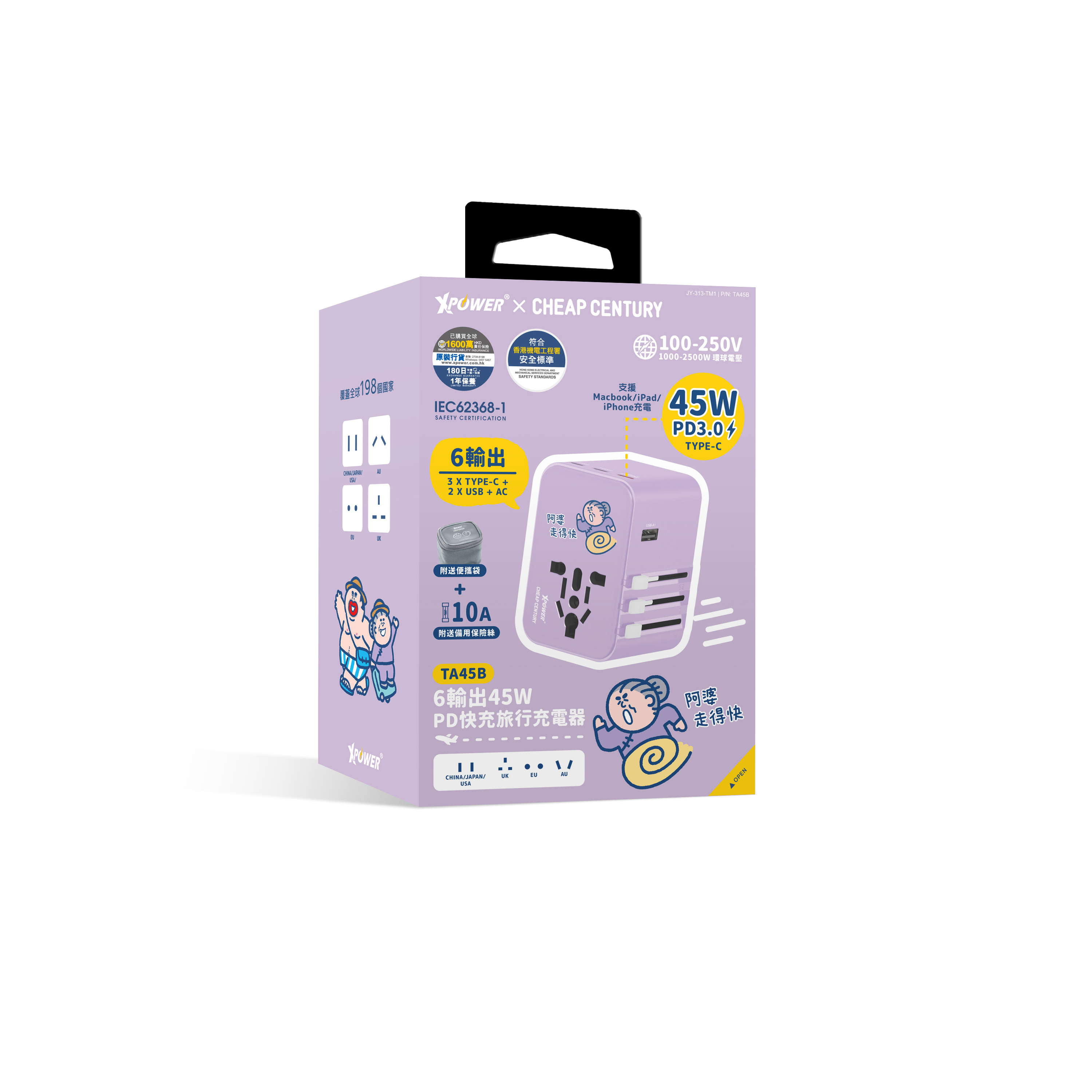 XPower x 阿婆TA45B 45W 6輸出PD3.0/PPS旅行充電器