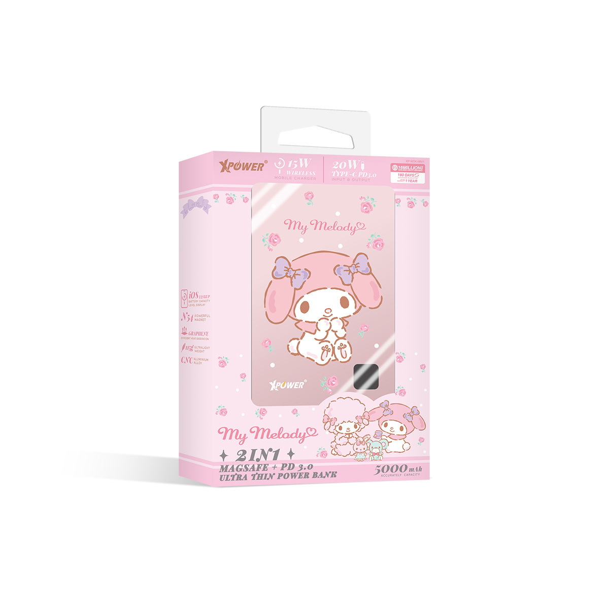 (3C認證版)XPower x Sanrio My Melody 3合1磁吸+PD3.0 5000mAh鋁合金移動電源 (M5K)