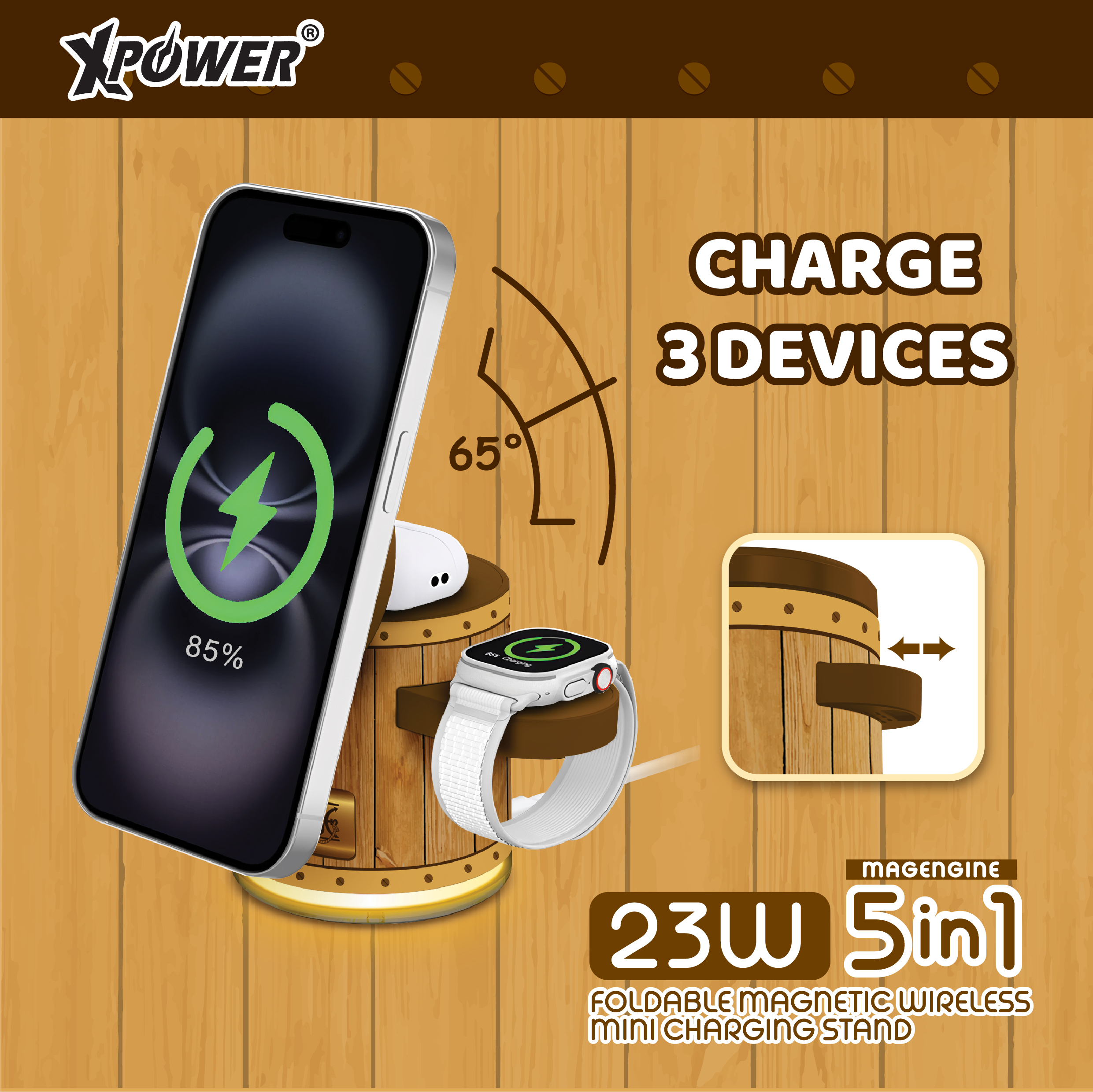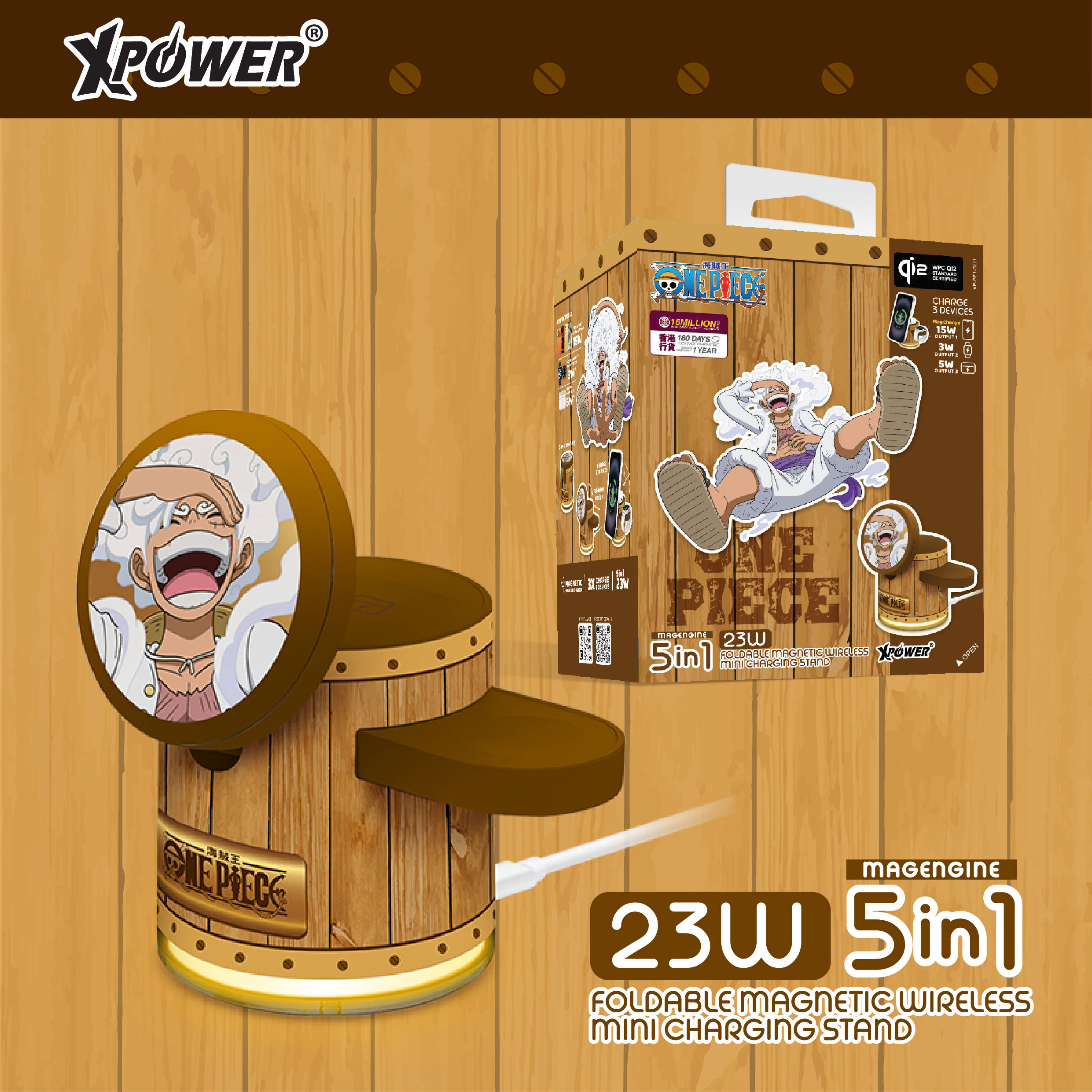 XPower x One Piece GE1 Qi2迷你掌心5合1 MagCharge 15W磁吸無線充電座