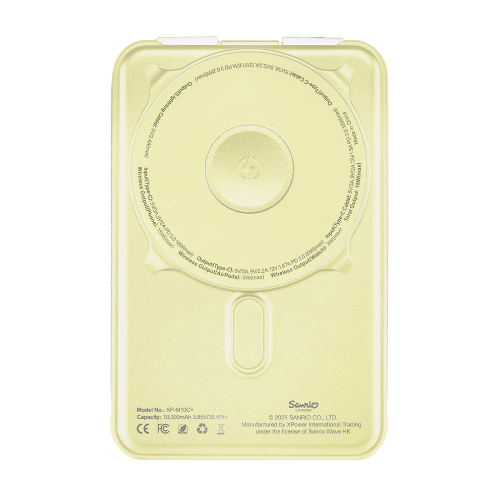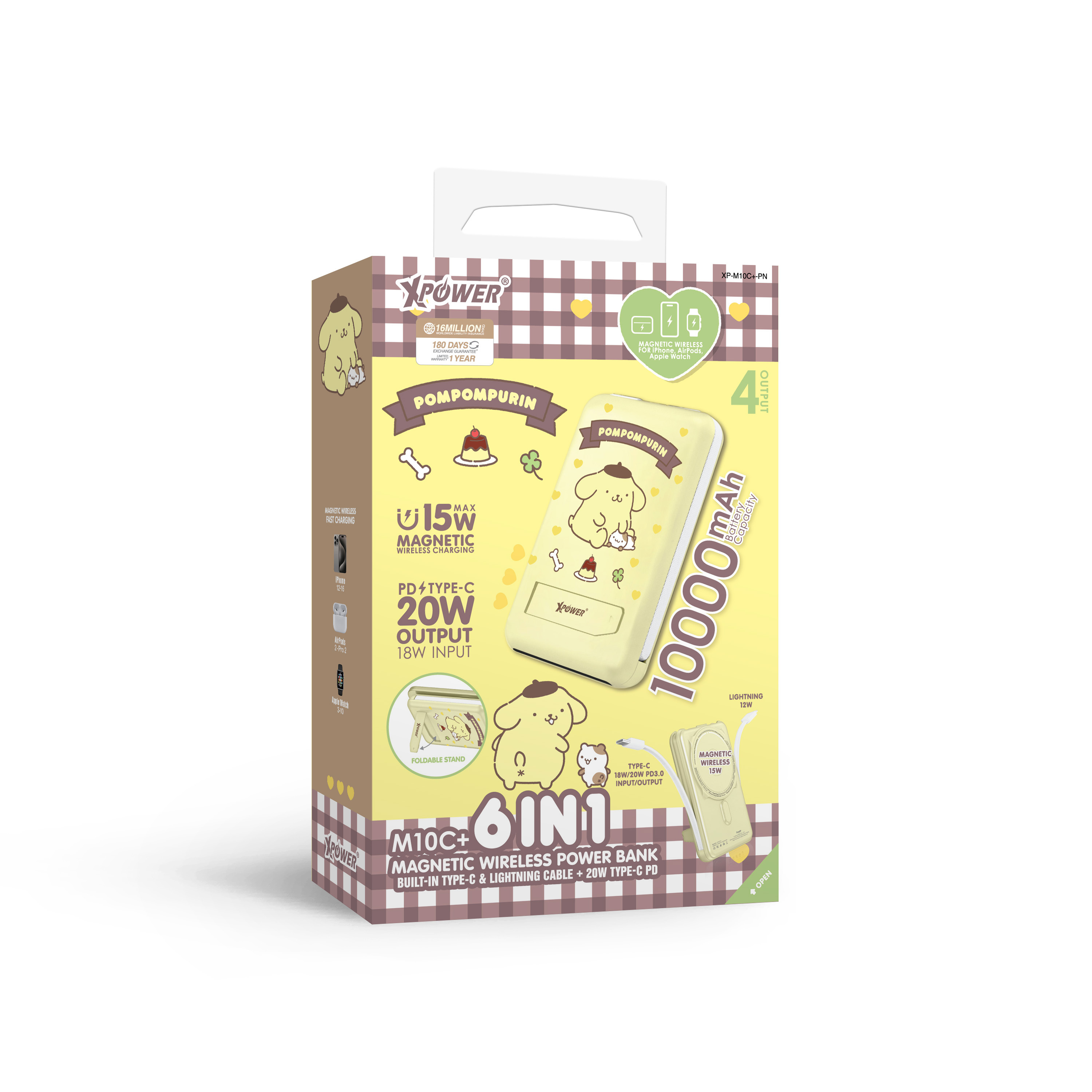 (雙TypeC線版)XPower x Sanrio Pompompurin M10C+ 6合1 10000mAh多功能迷你20W PD3.0+ 磁吸無線快充移動電源