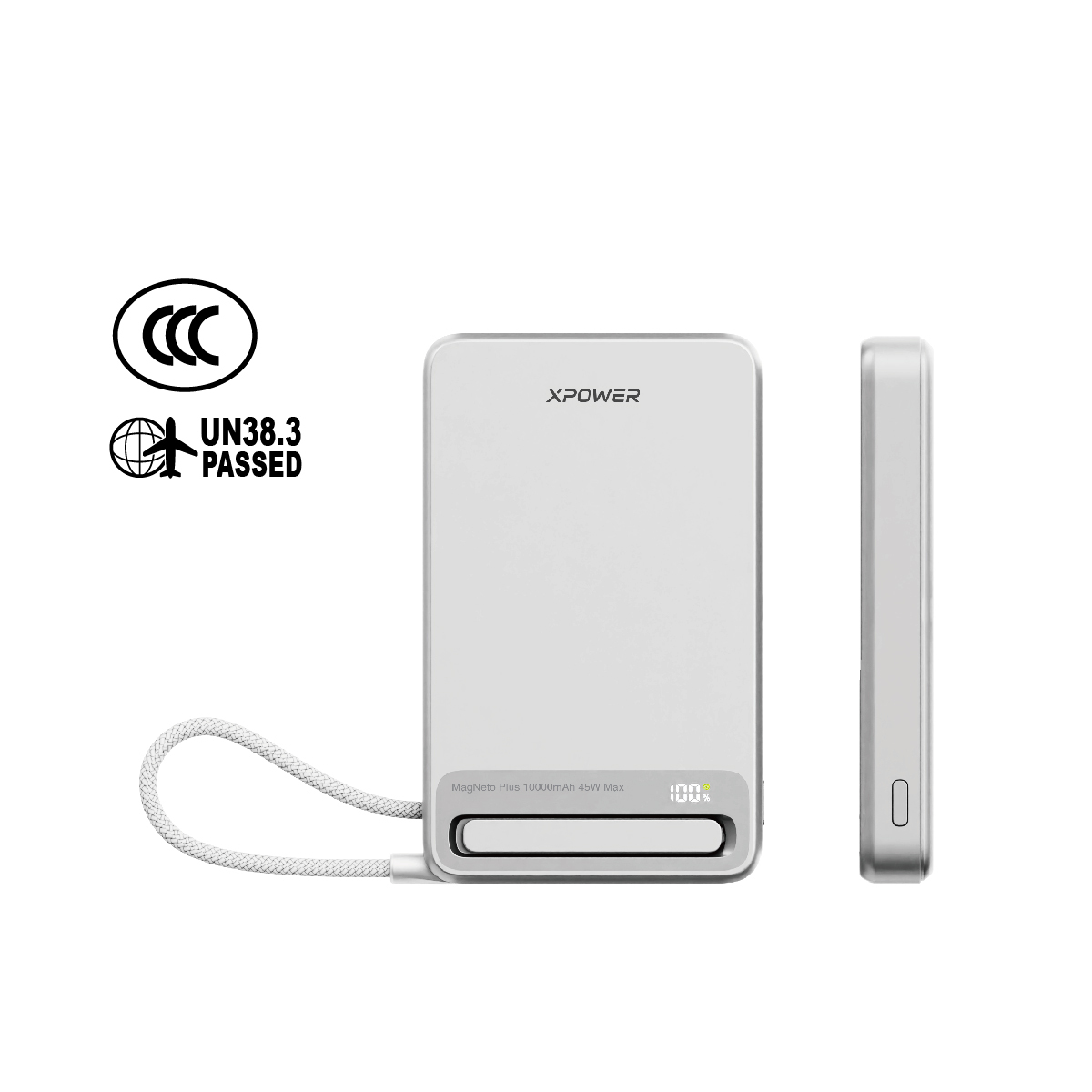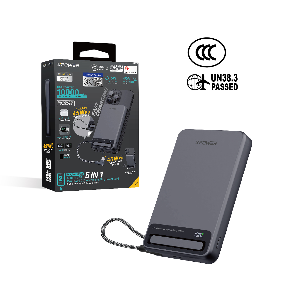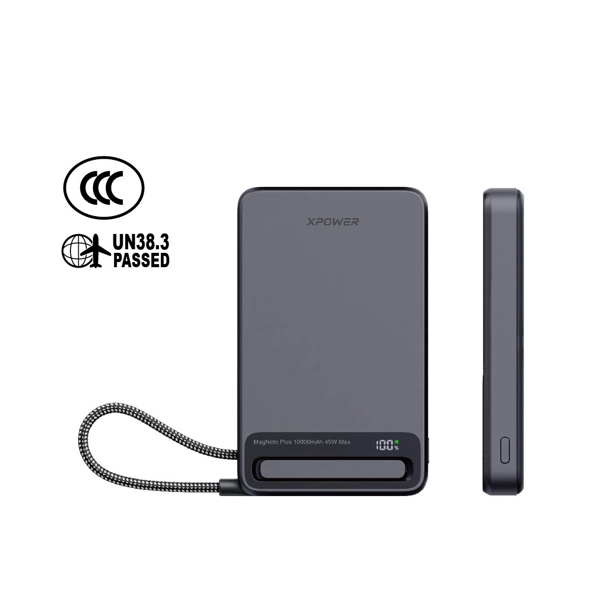 MagNetoPlus Q10 Pro 5A鋁合金10000mAh 45W PD3.0支架及數顯QI2磁吸移動電源內置45W Type-C充電線