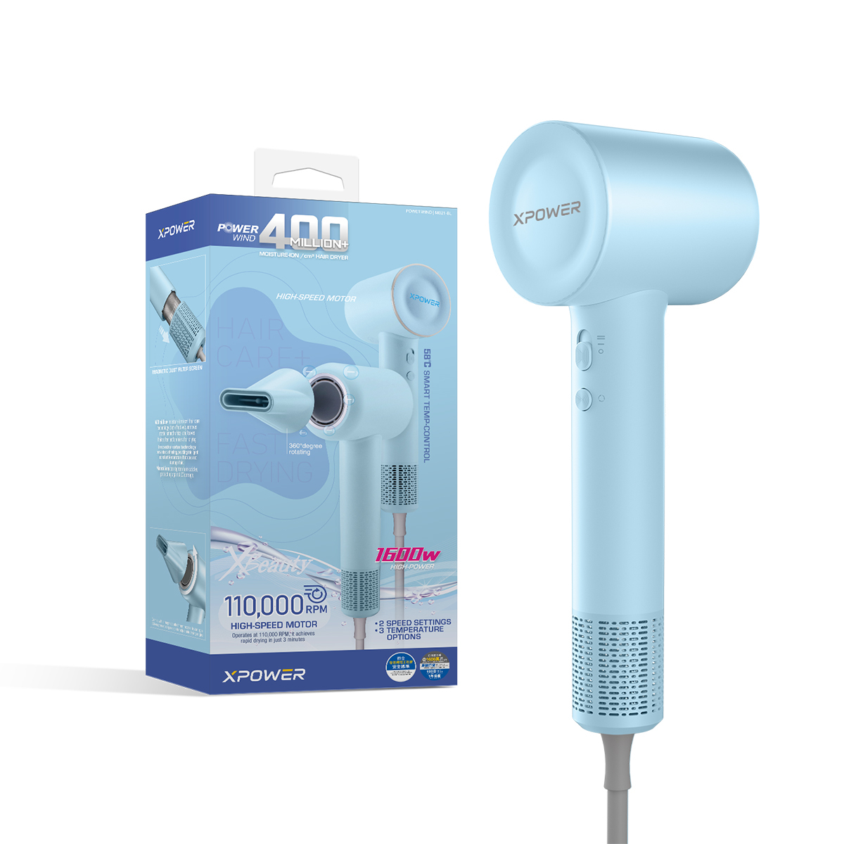 XPower POWERWIND 400M+ Moisture-Ion Hair Dryer