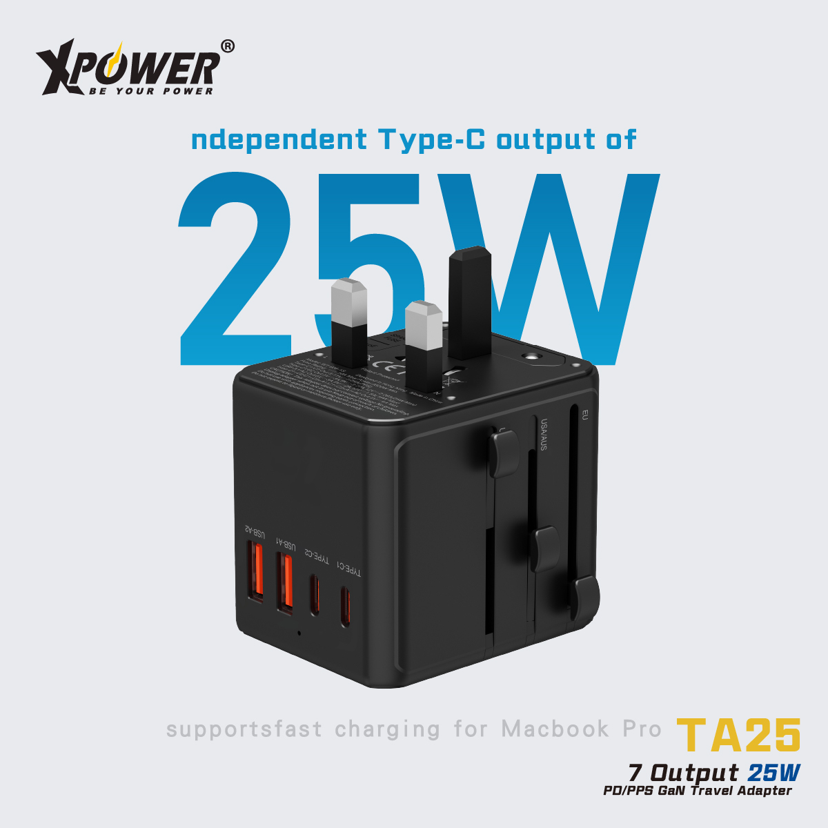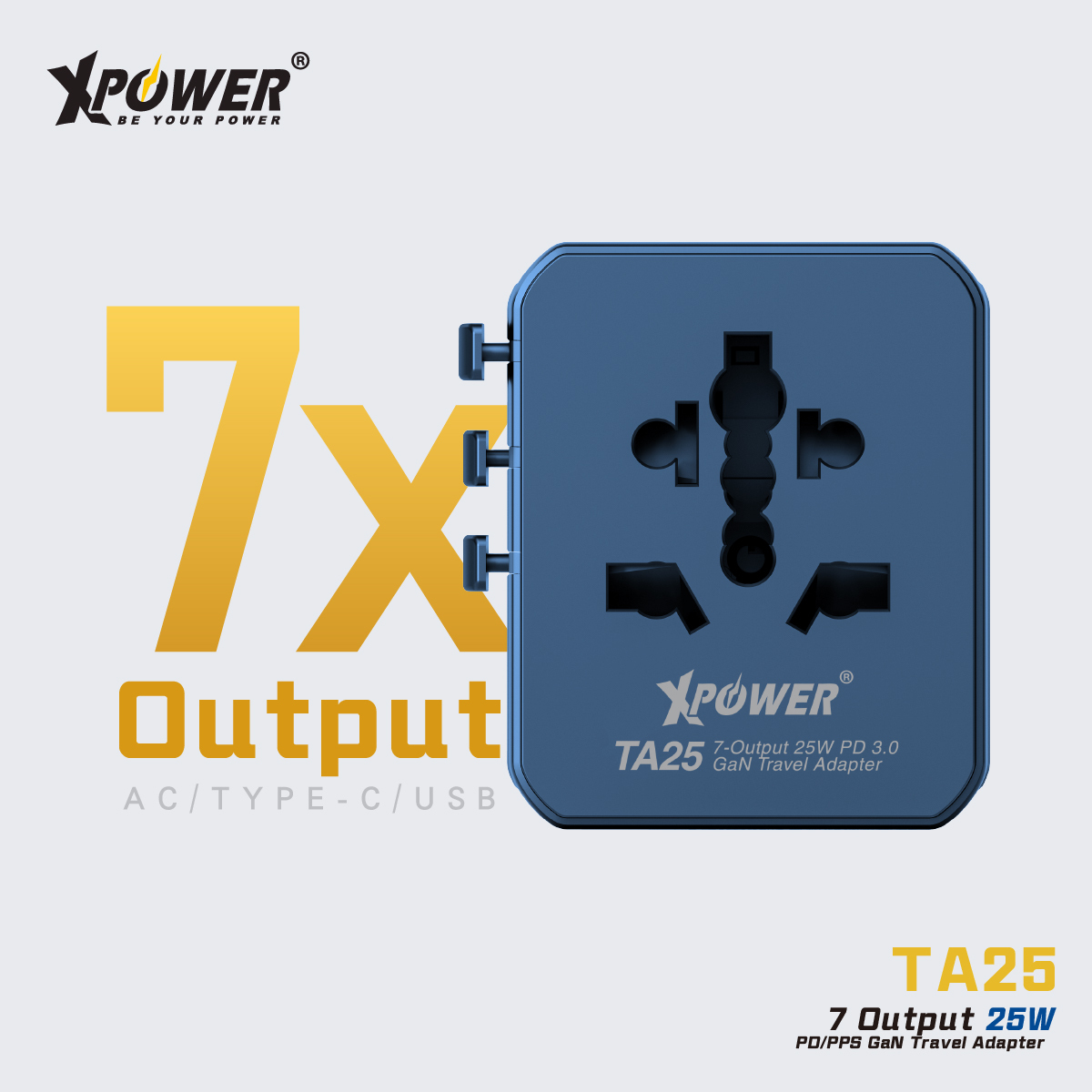 XPower TA25 7輸出 PD/PPS 25W Gan旅行充電器